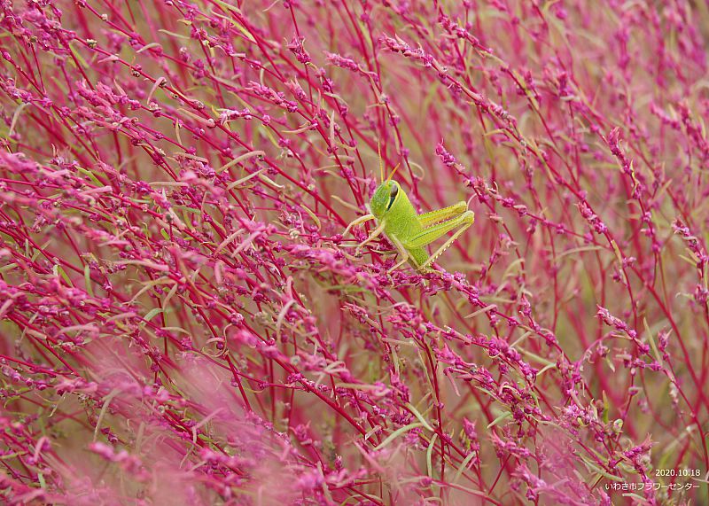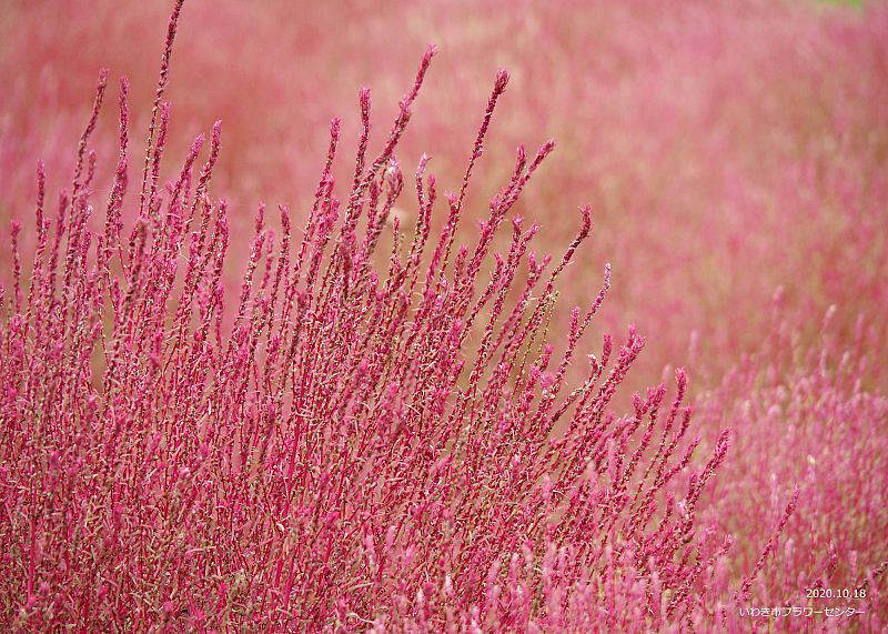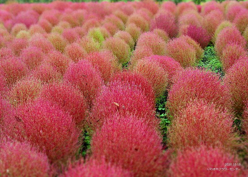 センター前大階段を上った先には風力発電が建てられており、その下にはコキアが植栽されています。