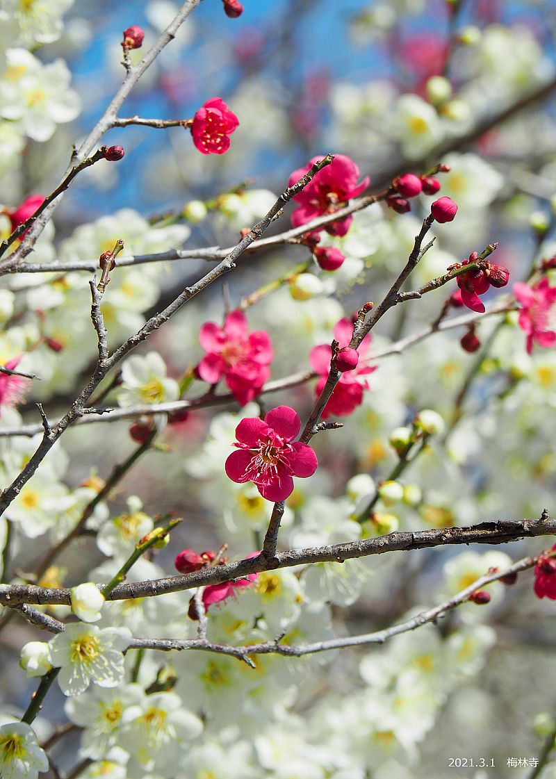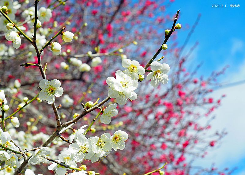 梅林寺のウメが見頃を迎えております! 2021.03.03 特集レポート 境内の梅がほぼ満開となった、いわき市常磐水野谷町の梅林寺。2月上旬より咲き始めており、青空のもとで甘い香りを漂わせ、白梅と紅梅の競演が目に鮮やかです。本格的な春の到来が待ち遠しいですね。ご来寺の際は、マスク着用など感染症対策をお願いいたします。・梅林寺住所:福島県いわき市常磐水野谷町千代鶴283電話:0246-43-2376 シェアする ポスト