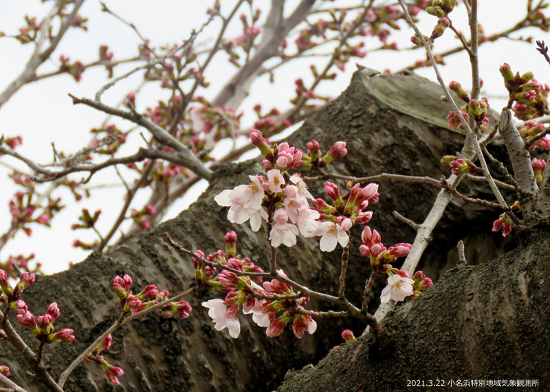 小名浜特別地域気象観測所(旧小名浜測候所)の敷地内にある標本木にて観測をしたところ、ソメイヨシノの開花を確認いたしました。