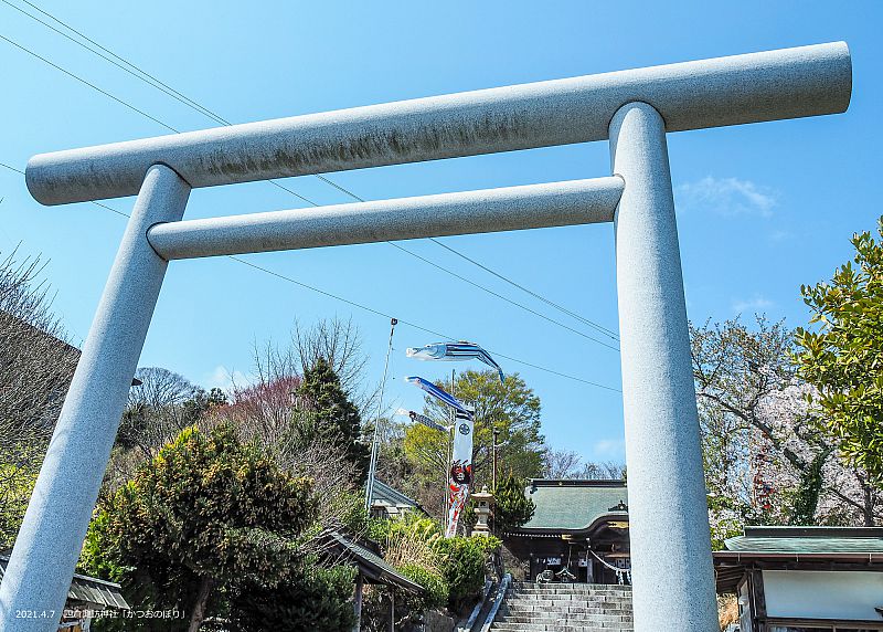 掲揚期間は5月中旬頃迄を予定しており、神社ではカツオがデザインされたオリジナルご朱印を頒布しております。