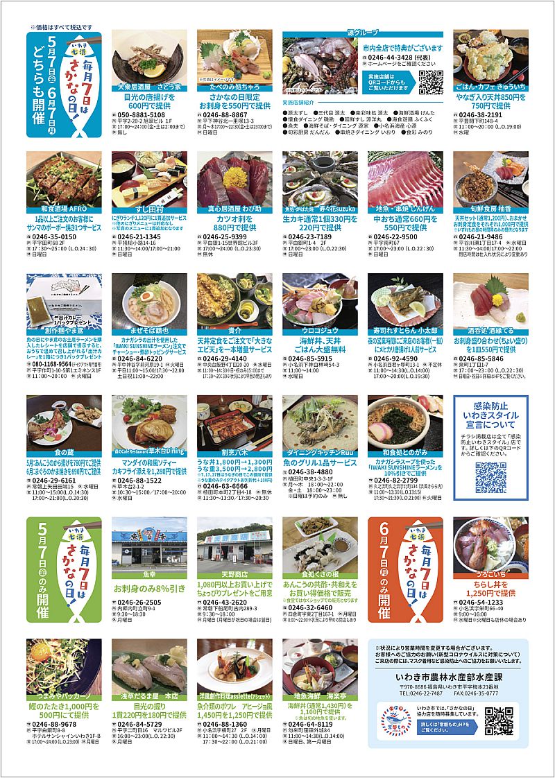 6月7日(月)もいわき市内の鮮魚店や飲食店で「いわき七浜さかなの日」にちなんだオリジナルサービスが実施されます。