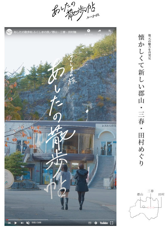 福島県内の身近なエリアを周遊する観光モデルルートや、地域の魅力の再発見につながる情報をお届けする特設WEBサイト「あしたの散歩帖」。