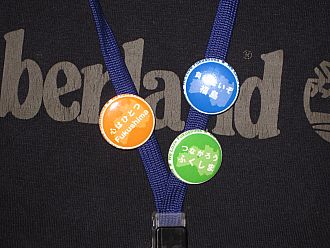 福島が復興に向けてみんなで力を合わせている事をアピールしていくために、バッジとステッカーを作りましたのでこれを販売し、売上の一部を義援金にしたいと思います。