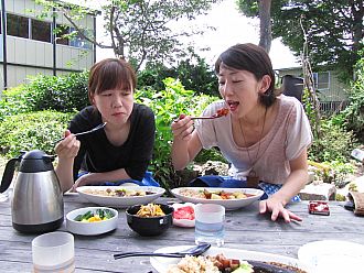 パンに、はさめるだけはさみ、美味しそうにほおばっている様子は