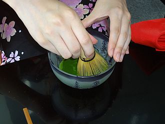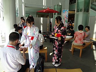 浴衣を着た生徒さんたちから、お抹茶とお菓子でもてなしていただき、はじめてのお抹茶はとても美味しく感じました!