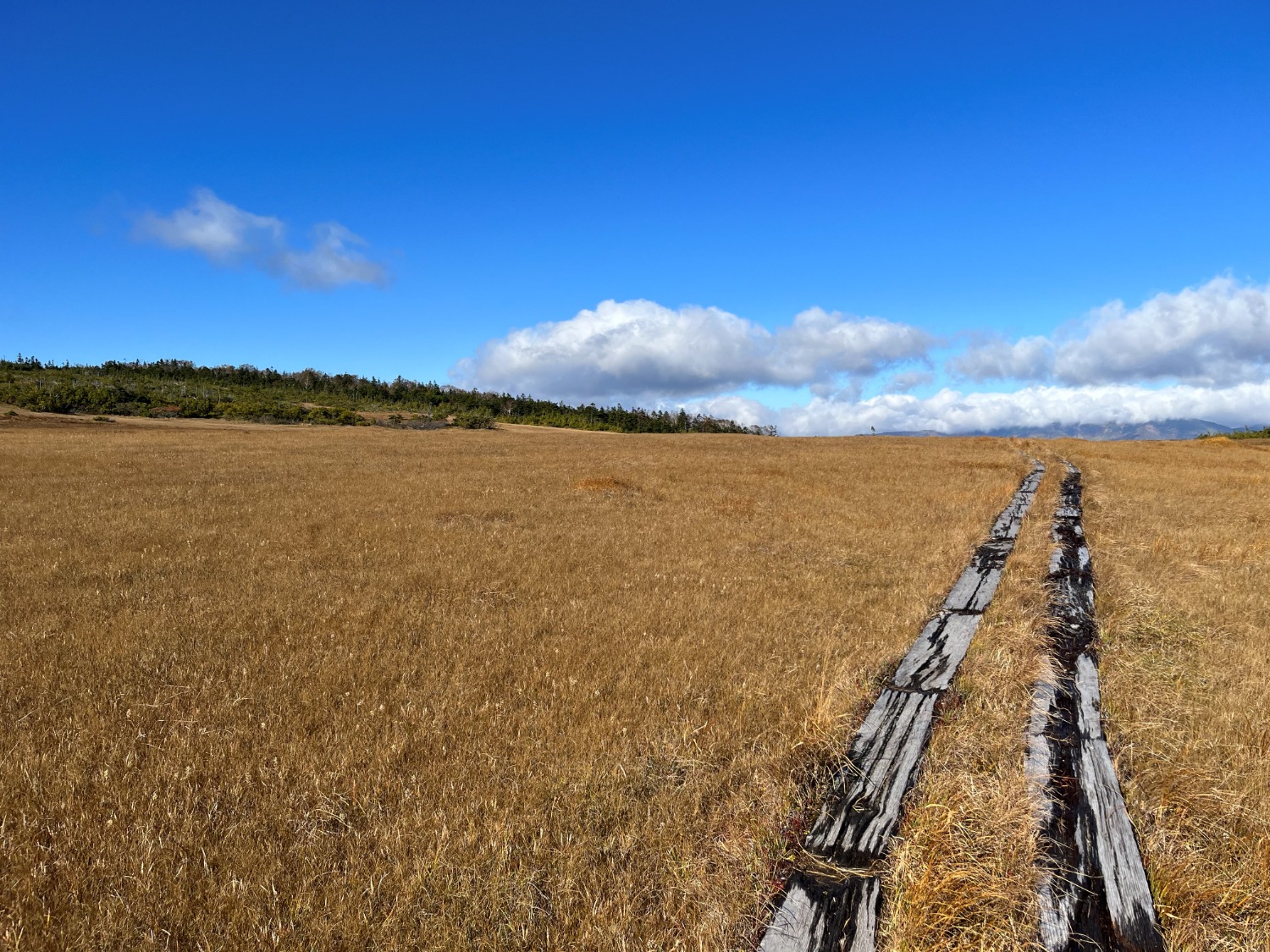 登山道の木々の紅葉だけでなく、山頂湿原の草紅葉は見ごたえがあります。キンコウカやチングルマ等の多くの高山植物が色づく姿で、華やかな黄金色の絶景が広がります。