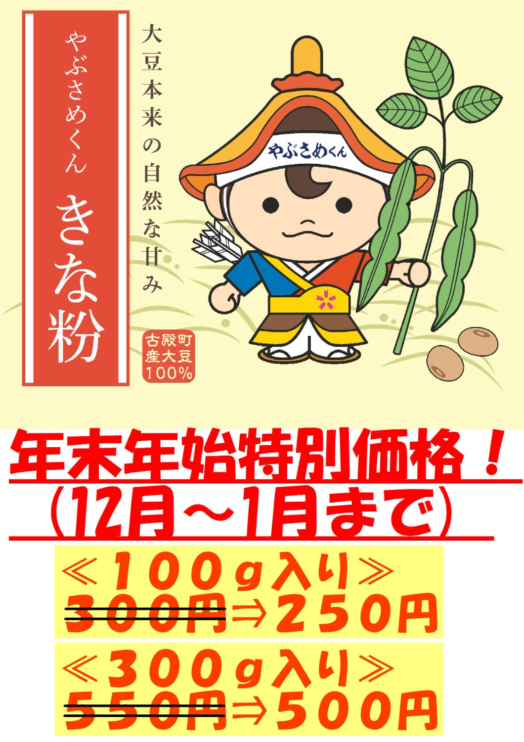 大豆の生産に力を入れている古殿町では、古殿町産大豆100%の原料できな粉を作りました。浅煎りで白っぽい色に仕上げています。お餅やアイスのトッピングにおススメです!