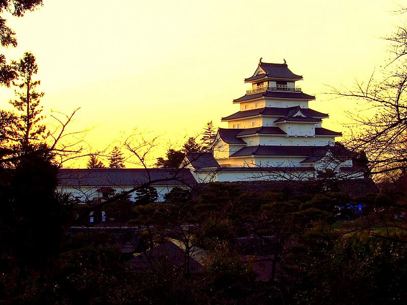 夕焼けに染まる鶴ヶ城