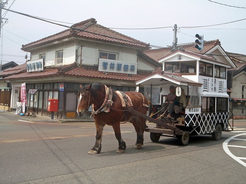 レトロなバスとレトロな街並み(小田付蔵通り)