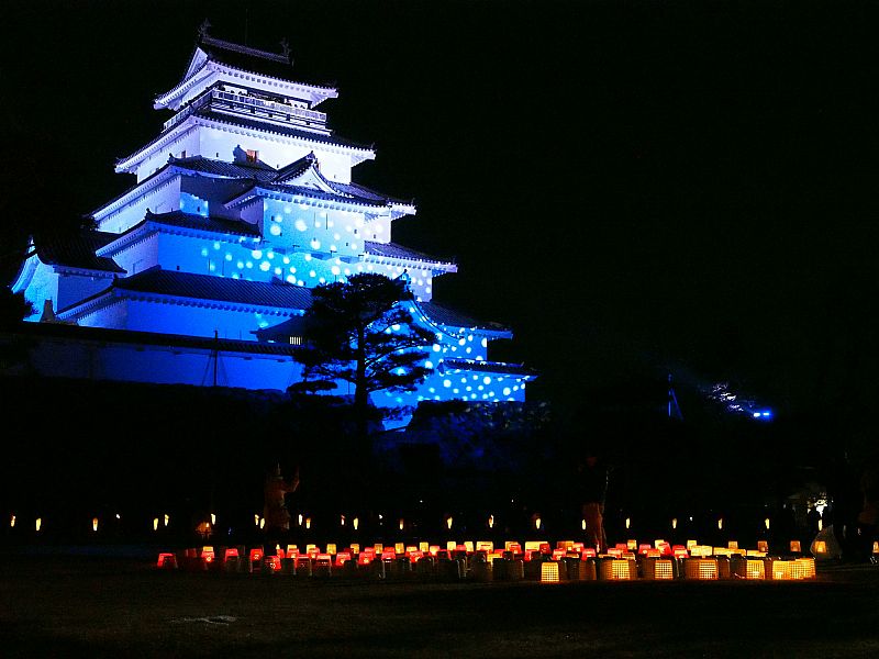 鶴ヶ城の絵ろうそく祭り