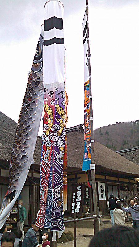 藁葺き屋根とコイノボリ