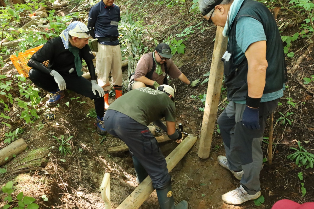 9月1日(月)、「飯豊朝日を愛する会」草刈氏、清水氏を講師に招き、「ほんとの空ツーリズム」関係者17名で、 烏川橋~旧道間の登山道保全作業を行いました。
