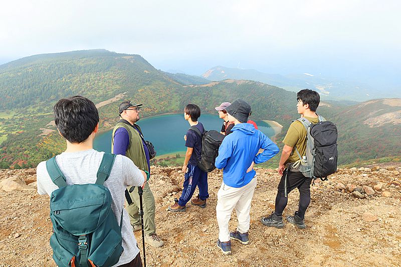 午後は一切経山への登山をスタートしました。協会の登山ガイド2名が参加者の前後へ付き、浄土平レストハウスを出発。コースの難易度は中程度で約4時間のコースを楽しみました。