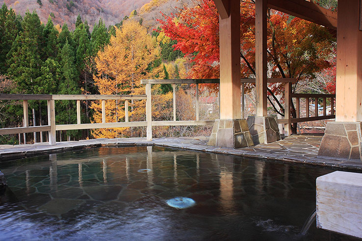 舟岐川に面し、高台にある日帰り温泉。露天風呂ではゆたかな自然と一体に。源泉は桧枝岐温泉の単純硫黄泉を単独で使用している。源泉かけ流し。
